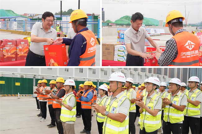 在施工現(xiàn)場(chǎng),牟曉巖董事長向奮戰(zhàn)在施工一線的建設(shè)者及家屬致以暖心的節(jié)日問候和誠摯祝愿,對(duì)大家堅(jiān)守崗位、聚力攻堅(jiān)表示感謝。他表示,當(dāng)前正值工程項(xiàng)目施工“黃金期”,工期緊、任務(wù)重,廣大干部職工發(fā)揚(yáng)“城建鐵軍”精神,凝心聚力、拼搏奮進(jìn),有力推動(dòng)了工程建設(shè)提質(zhì)增效,助力集團(tuán)跑出高質(zhì)量發(fā)展“加速度”。希望大家錨定“效益提升年”任務(wù)目標(biāo)不松懈,蹄疾步穩(wěn)、乘勢(shì)而上,在保證安全的基礎(chǔ)上爭(zhēng)分奪秒推進(jìn)工程項(xiàng)目建設(shè),秉承匠心精神鑄造精品工程,以實(shí)際行動(dòng)為加快建設(shè)“強(qiáng)新優(yōu)富美高”新時(shí)代社會(huì)主義現(xiàn)代化強(qiáng)省會(huì)建設(shè)作出新的更大貢獻(xiàn)!