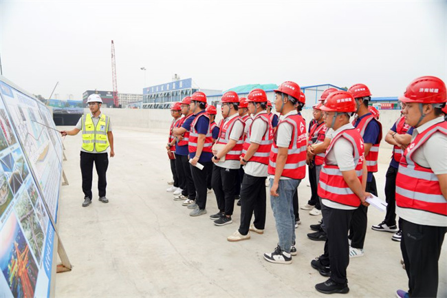 青年職工代表齊聚黃崗路穿黃隧道工程一線,現(xiàn)場(chǎng)觀摩全球最大直徑盾構(gòu)在建工程施工盛況,聽取了工程概況、推進(jìn)措施、施工亮點(diǎn)等情況介紹,詳細(xì)了解了黃崗路穿黃隧道工程施工工藝與施工難點(diǎn),青年職工們倍感振奮、深受鼓舞,對(duì)集團(tuán)未來發(fā)展充滿信心和期待。
