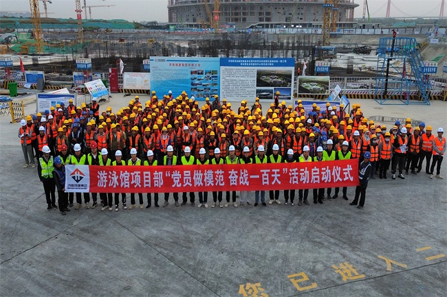開局決戰(zhàn),展現(xiàn)城建速度。集團(tuán)承建的濟(jì)南起步區(qū)黃河體育及科技園區(qū)基礎(chǔ)設(shè)施一期工程游泳館及全民健身中心施工項(xiàng)目設(shè)計(jì)為甲級(jí)體育建筑,總建筑面積為16.63萬平方米,總座席數(shù)約4000 座,地上部分為游泳跳水館和全民健身功能。項(xiàng)目包括“水主題”健身休閑活動(dòng)中心、“水主題”文化展示活動(dòng)中心、時(shí)尚體育中心三大部分。工程建設(shè)初期,項(xiàng)目團(tuán)隊(duì)第一時(shí)間召開動(dòng)員大會(huì),全力疏通施工“痛點(diǎn)、難點(diǎn)、堵點(diǎn)”,堅(jiān)持高標(biāo)準(zhǔn)、嚴(yán)要求施工原則,完成土方開挖16.6萬立方米,混凝土澆筑38400立方米,鋼筋綁扎5680噸,高質(zhì)高效推動(dòng)項(xiàng)目建設(shè)。