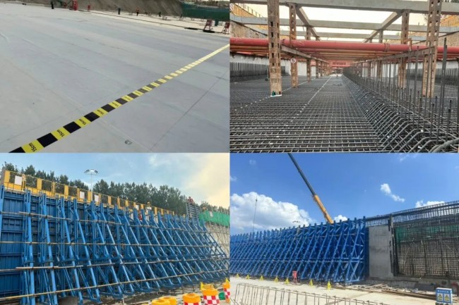 鋼筋間距測量準,質(zhì)量提升源頭控。項目部高度重視工程施工質(zhì)量,密切關注各工序施工過程的細節(jié)管理。鋼筋工程施工過程中,采用鋼筋間距控制貼,通過在預鋪反粘卷材上粘貼專用的間距控制貼,實現(xiàn)了鋼筋間距的精度控制,確保了鋼筋布置的準確性和規(guī)范性。在明挖隧道結構施工中,采用組合式定制側墻大鋼模,提升側墻實體質(zhì)量,大幅降低工程材耗,保證結構“線條流暢、棱角分明,內(nèi)實外美、不滲不漏”。
