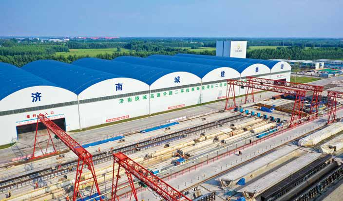 近年來,以裝配式為核心的建筑產(chǎn)業(yè)化快速發(fā)展,成為加快施工效率、提升企業(yè)全產(chǎn)業(yè)鏈整合能力、增強市場競爭力的重要推動力。集團以大西環(huán)項目為試點,遵循“因地制宜、節(jié)約土地、保護環(huán)境、安全可靠”的原則,投資 8000 萬元建設濟南繞城高速公路二環(huán)線西環(huán)段項目預制場站。預制場站占地面積約 180 畝,以信息管理、集約化管理為依托,高標準合理規(guī)劃場站布局,劃分出制梁區(qū)、鋼筋加工區(qū)、存梁區(qū)、保障區(qū)、提梁上橋區(qū)(裝車區(qū)〉和辦公生活區(qū)等區(qū)段,各區(qū)段布局合理,功能完備。其中,預制臺座總體布局為南北方向,共分為 3個預制區(qū),每個預制區(qū)左側為兩槽縱向排列預